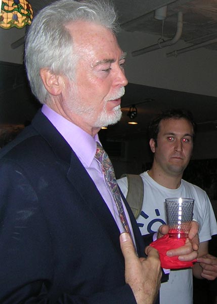 Jim Rado speaks to us. Behind him: Leo Lunser, Judy Burnett,