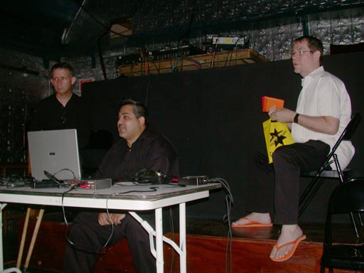 Emcee, DJ Bil Gonzalez, and Jeff Lunger, video researcher for the Hair