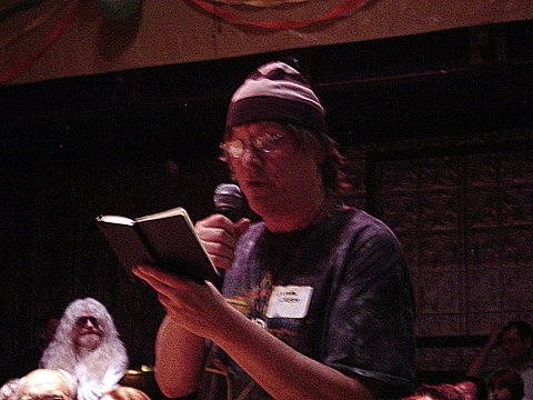 Jim Rado reads, Red Shepard watches in the background