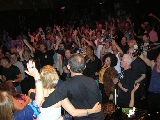 On Saturday, September 10, 2005 several hundred Hair alumni gathered at La MaMa, e.t.c in New York City for the first international reunion of Hair alumni. People came from New York, California (north and south), Washington state, Texas, Florida, Vermont, Maine, Massachusetts, Connecticut, New Hampshire, Missouri, Oregon, Nevada, and even Alaska! Alumni from every first run US company, and quite a few from European companies (Germany, Spain, Amsterdam, London) attended. Alumni from all production capacities were there including on stage, backstage, office, creative team, fans, concession, and their friends and family. We sang, we danced, we saw old friends and a transcendent, wonderful time was had by all!