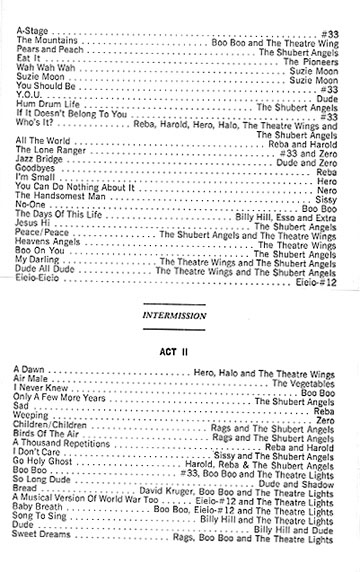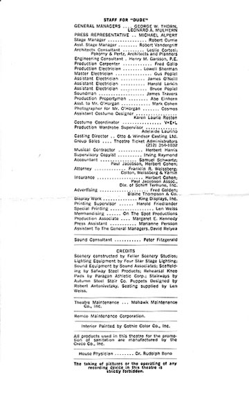 Note the many changes in cast and songs between this Preview Playbill and the Opening Night Playbill.