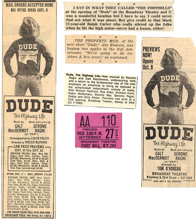 Notice the change of directors in the ads, from Rocco Bufano in the earlier ad on the left, to Tom O'Horgan in the later ad on the right.